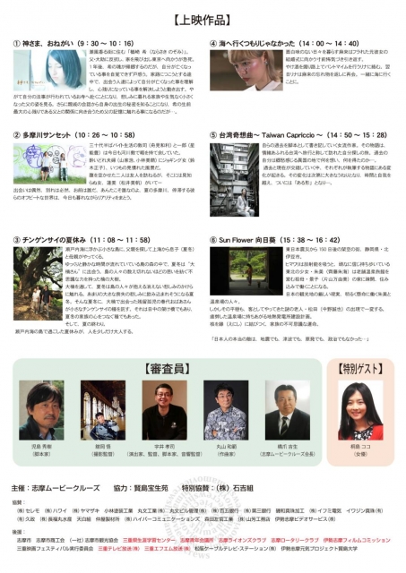 CSR活動等 第3回賢島映画祭(メインスポンサー) 平成29年9月3日賢島宝生苑で「第3回賢島映画祭」が開催されました。 地域主役型の映画祭で今回は、東日本大震災の被災地の映画で「SunFlower向日葵」が 受賞されました。 第3回賢島映画祭ポスター第3回賢島映画祭ポスター第3回賢島映画祭グランプリ受賞第3回賢島映画祭パーティー