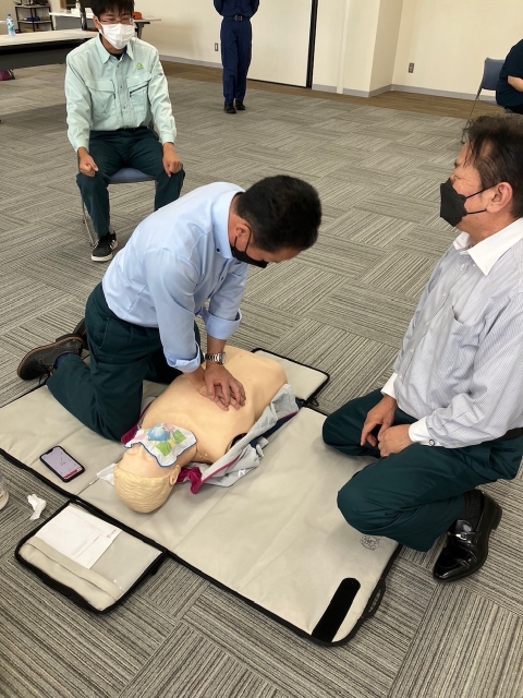 2023年、4月15日と5月20日の午前、午後の4回に分かれ本社全員が応急手当講習を志摩市消防本部で受けました。消防隊員の方々には、わかりやすく丁寧に指導して頂き大変よく理解ができました。本当に有難うございました。この知識と行動力があれば、人の生命が救えるかもしれないと思うと皆が真剣に取り組みました。また、様々なケースもお聞かせいただき日頃の消防隊員の皆様のご苦労がわかり感謝の気持ちでいっぱいになりました。沢山の方々に講習を受けていただき、緊急の場合に大切な生命を地域の皆様で守れたらいいですね。