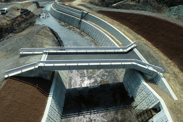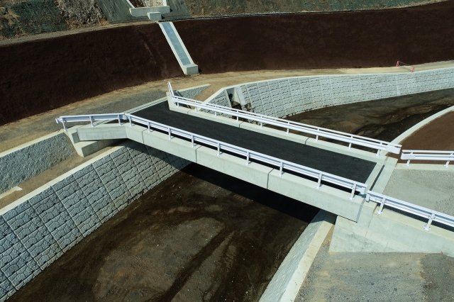当該工事付近で5つの工事、他業者が施工していたので、調整に苦労しました。また、工区内に既設の水路があり、水路の切り替えや、大雨時に橋台・床掘内に土砂が流れ込み水中ポンプが詰まり水があふれる、仮設道路上を流れた水で仮設道路が崩壊しそうになるなどがあったが、迅速に復旧作業を行い、他工事への影響を最小限に抑えることができました。