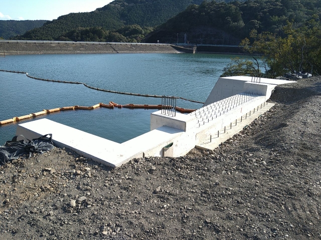 環境面では、現場がダム湖内ということで、水質に影響がないことを確認しながら工事を進めました。